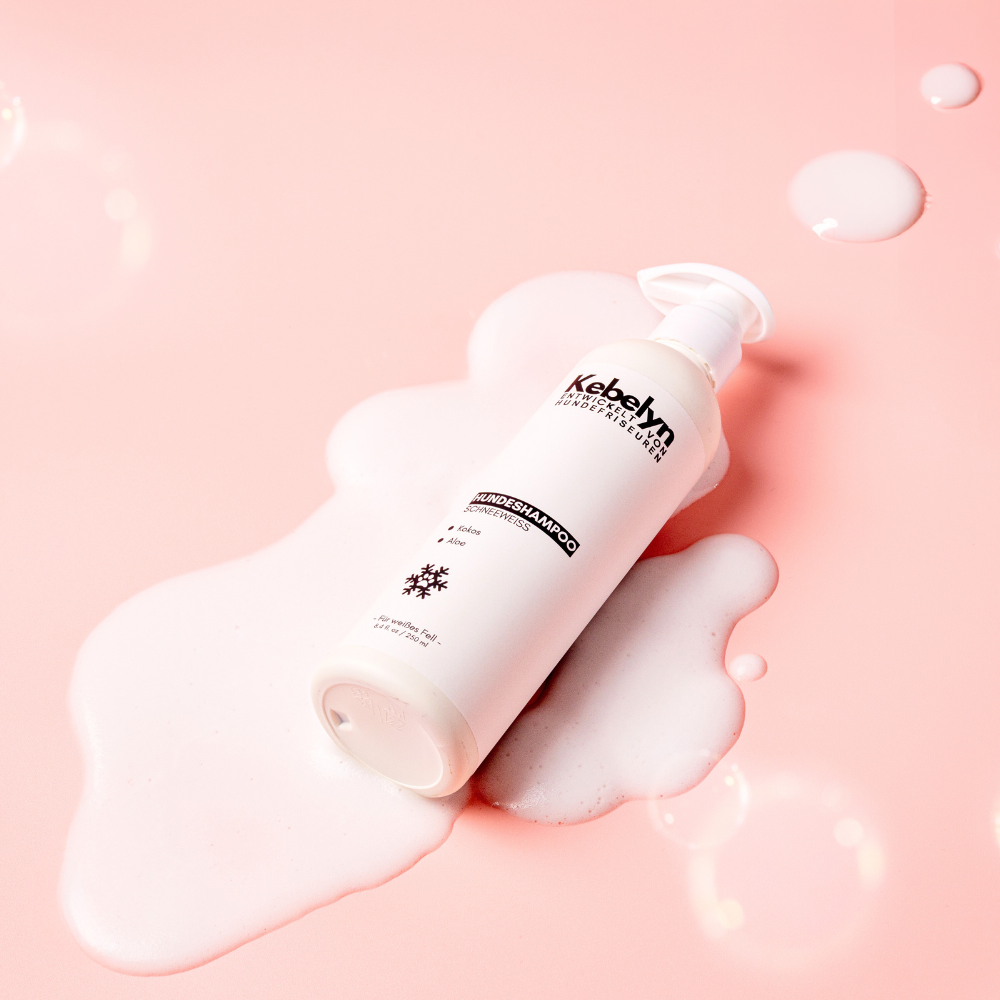 Das Hundeshampoo Schneeweiß ist speziell für Hunde mit weißem Fell entwickelt worden. Es reinigt hervorragend und verstärkt durch Aloe Vera, Seidenproteine und natürliche Farb-Pigmente das strahlende Weiß und den Glanz des Fells. Es ist für Malteser, Bichon Frisee, helle Havaneser, weiße Pudel, oder Cocker, für alle Hunde mit weißem Fell geeignet. Die Farbe wird auf natürliche Weise intensiviert. Zusätzlich wird nach der Wäsche empfohlen einen Conditioner, Leave-in-Cream, Fell-Seidenspray oder Fellmaske zu verwenden, damit sich die Haarschuppen wieder schließen.